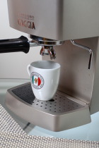 The Gaggia Espresso uses a 1100-watt boiler element that heats the machine up in a few minutes. Like most other machines, it performs best after it has been on for 5 or 10 minutes - with a couple of flushes of water through the brew group. Like every other Gaggia, the boilers have dual elements on the outside of the boiler - almost eliminating the risk of burnout. The Gaggia Espresso has a heavy-duty 58mm grouphead and solid brass portafilter handle. Commercial size!